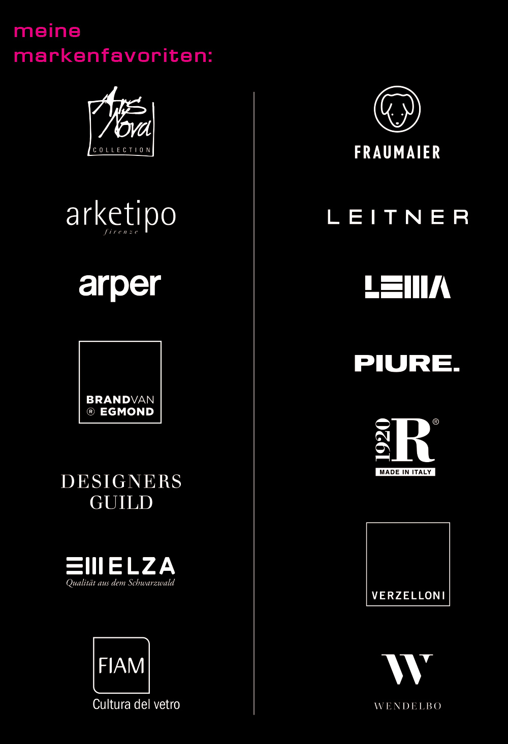Mit kompetenter und vertrauensvoller Beratung helfe ich Ihnen, aus dem vielfältigen Möbelsortiment hervorragender Hersteller Ihre individuelle Einrichtung auszuwählen, z. B. von Arper, Flou, Lema, MDF Italia, Piure, Tribú, Wendelbo und anderen.